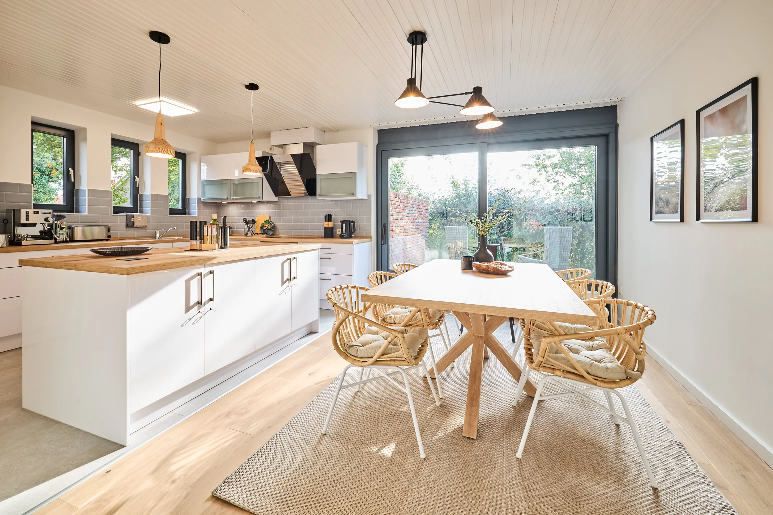 Hier bieten wir Ihnen erste Einblicke in die hellen und gemütlichen Wohn- und Schlafräume im skandinavischen Stil sowie den großen Naturgarten.